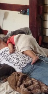 小若の抱っこ寝うつ伏せ寝。